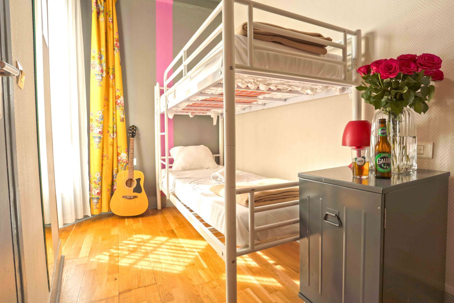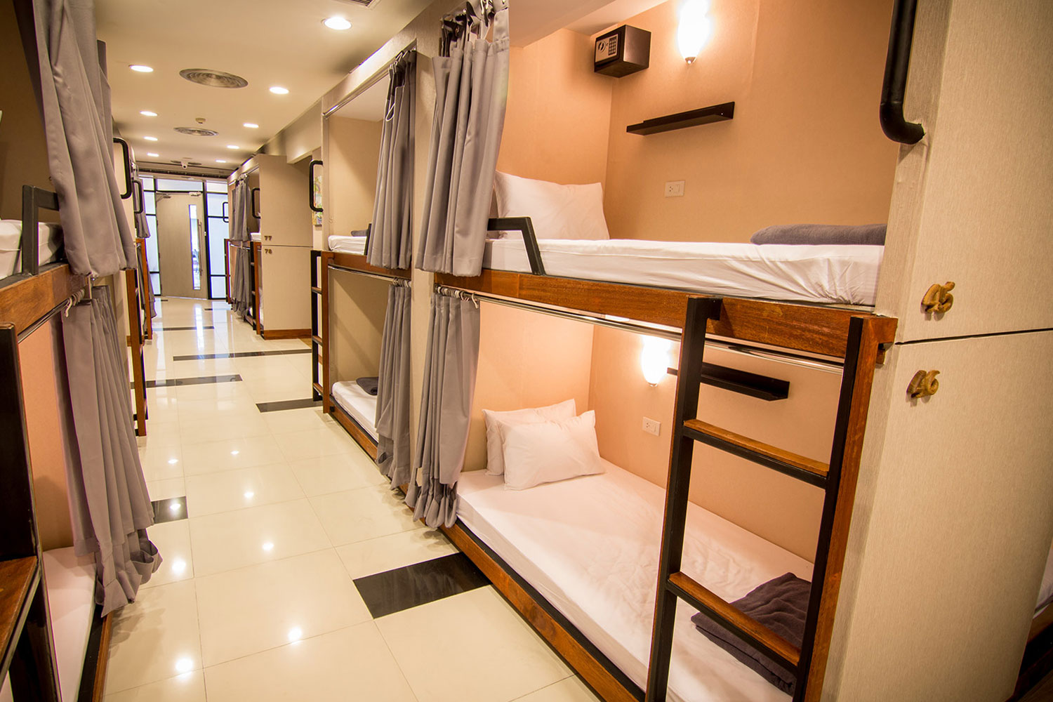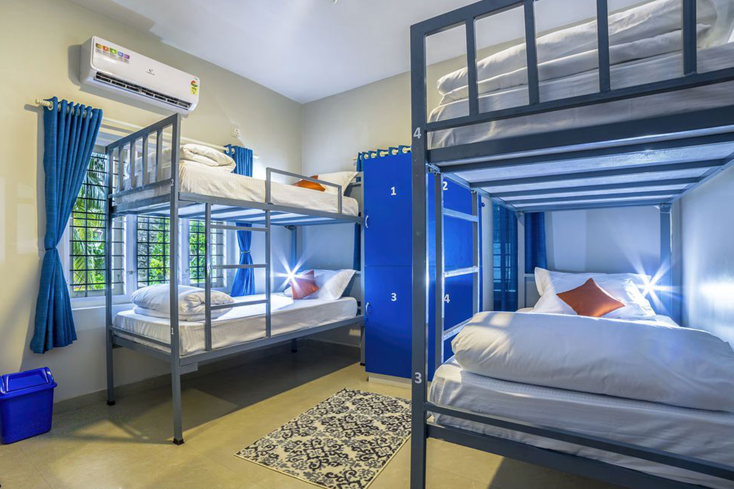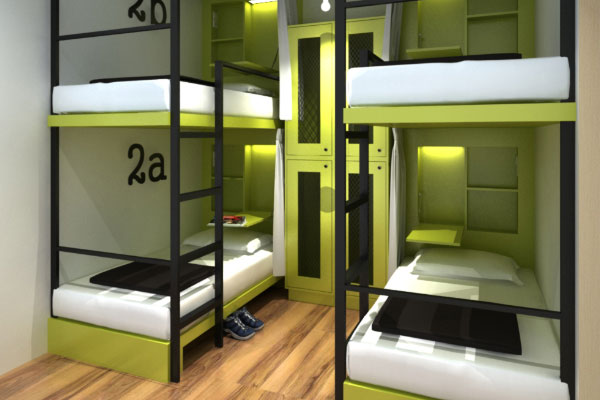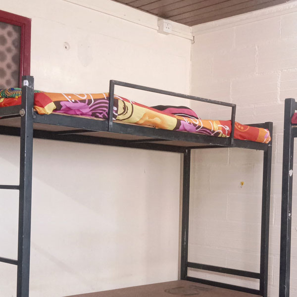 6' x 3' cot with bed and pillow, Cupboard, Wall mirror, Table With chair, Socket for mobile charging, free unlimited wifi.